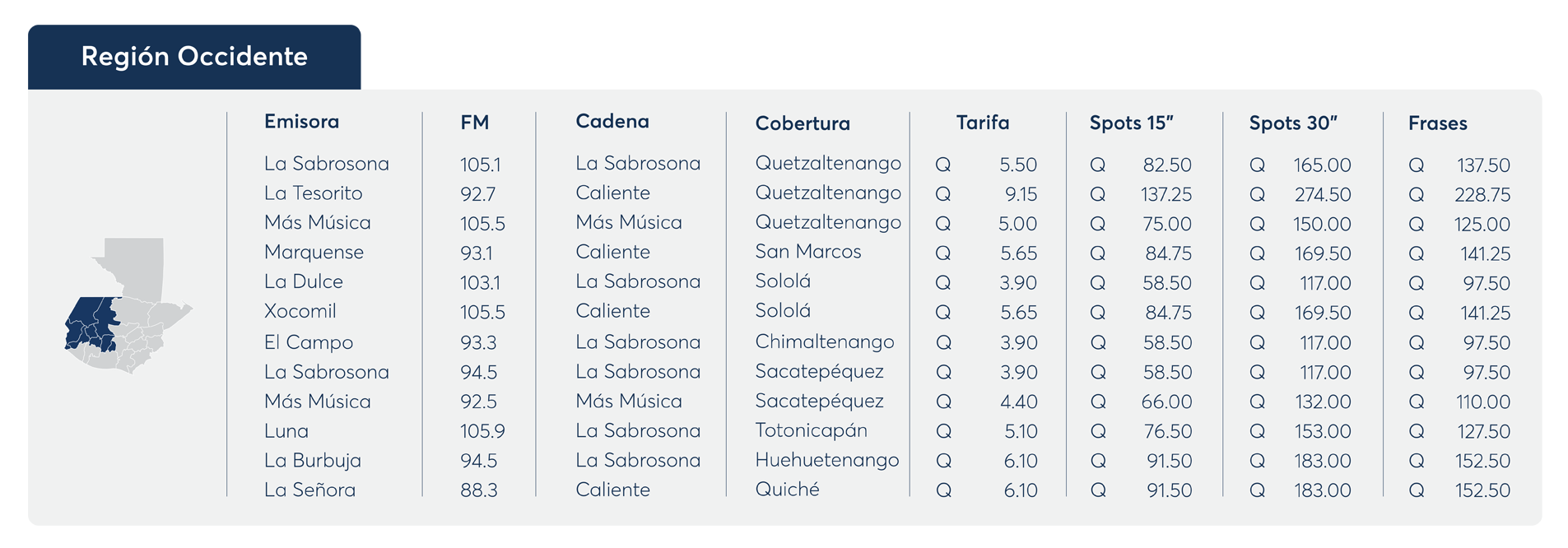 Contamos con estaciones de radio en cada departamento de Guatemala.